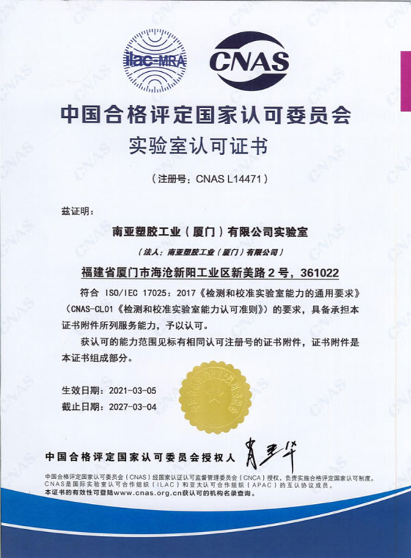 臺(tái)塑南亞擁有先進(jìn)的生產(chǎn)加工設(shè)備以及實(shí)驗(yàn)室設(shè)備,并被國家塑料質(zhì)量檢測中心認(rèn)可。